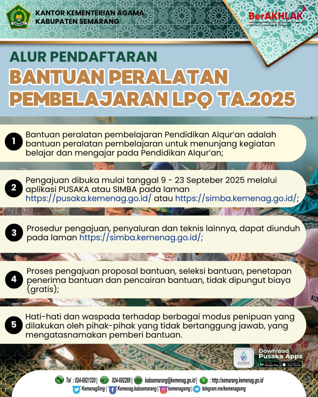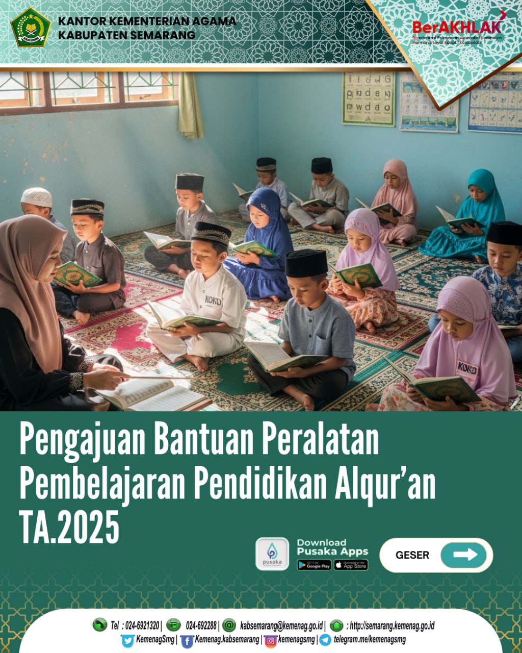 Pengajuan Bantuan Peralatan Pembelajaran untuk Lembaga Pendidikan Alqur’an Tahun Anggaran 2025 juga sudah dibuka!!!
