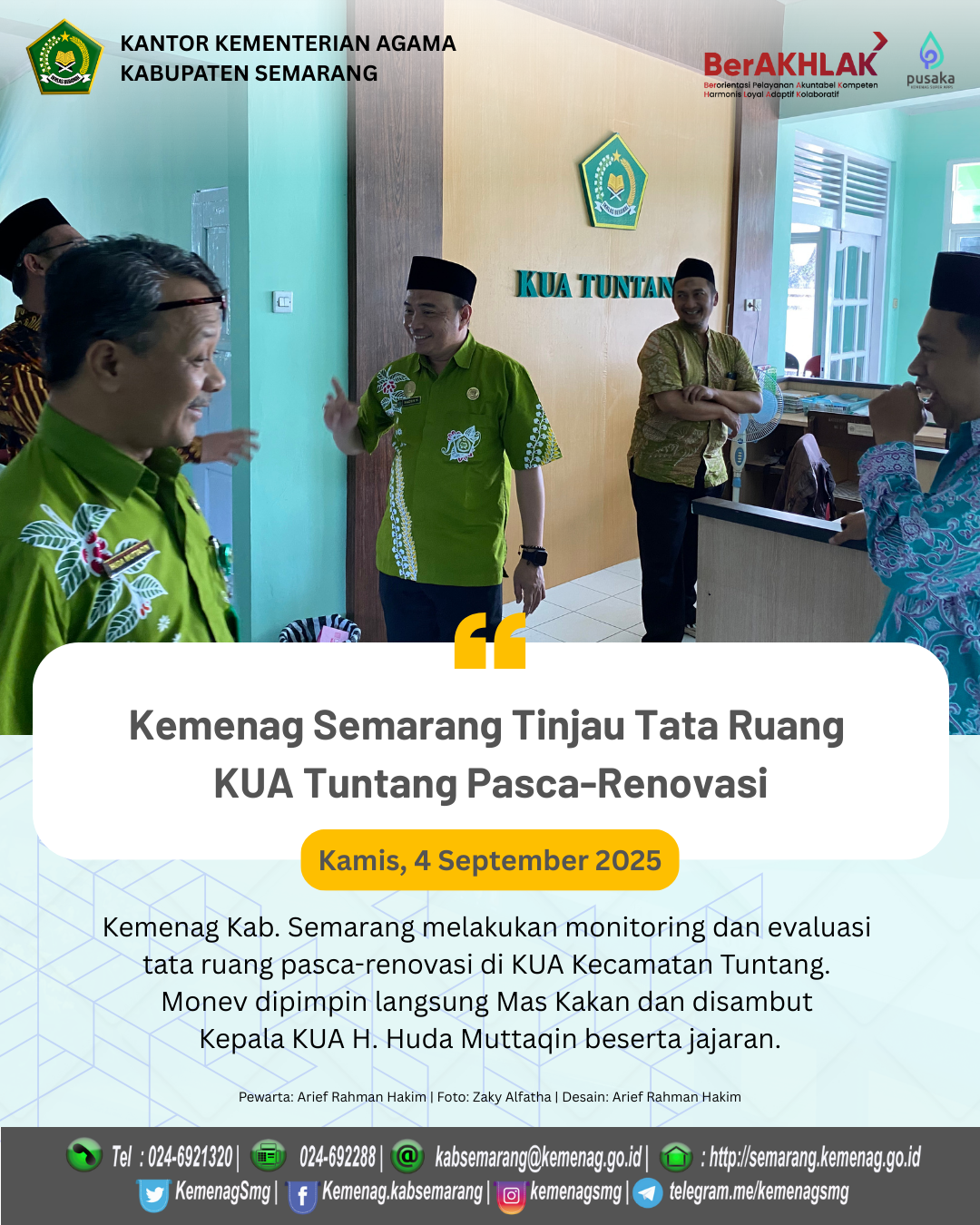 Kantor Kementerian Agama Kabupaten Semarang kembali melaksanakan kegiatan monitoring dan evaluasi (monev) ke Kantor Urusan Agama (KUA) pada Kamis (4/9/2025).