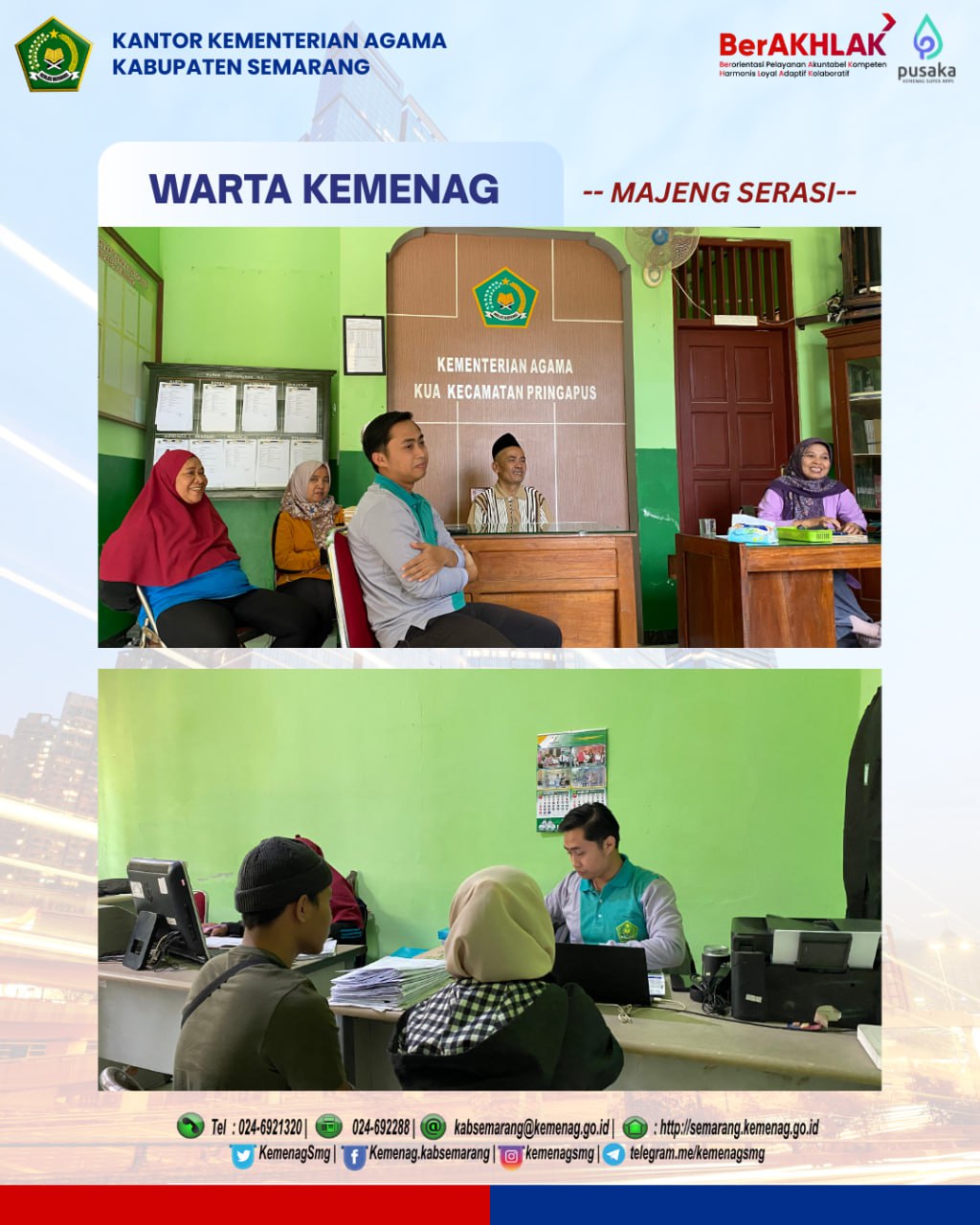 Monitoring ini diharapkan dapat menjadi motivasi bagi seluruh jajaran KUA Pringapus untuk terus meningkatkan mutu pelayanan, menjaga tertib administrasi, dan menciptakan suasana kerja yang kondusif sehingga masyarakat mendapatkan layanan terbaik.