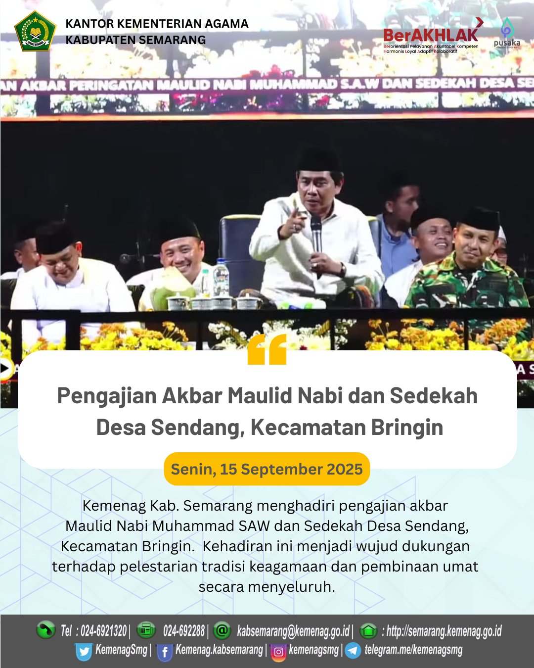 #ASNBerAKHLAK #KemenagResponsif #KemenagSemarang #MaulidNabi #PengajianAkbar #SedekahDesa #TradisiKeagamaan